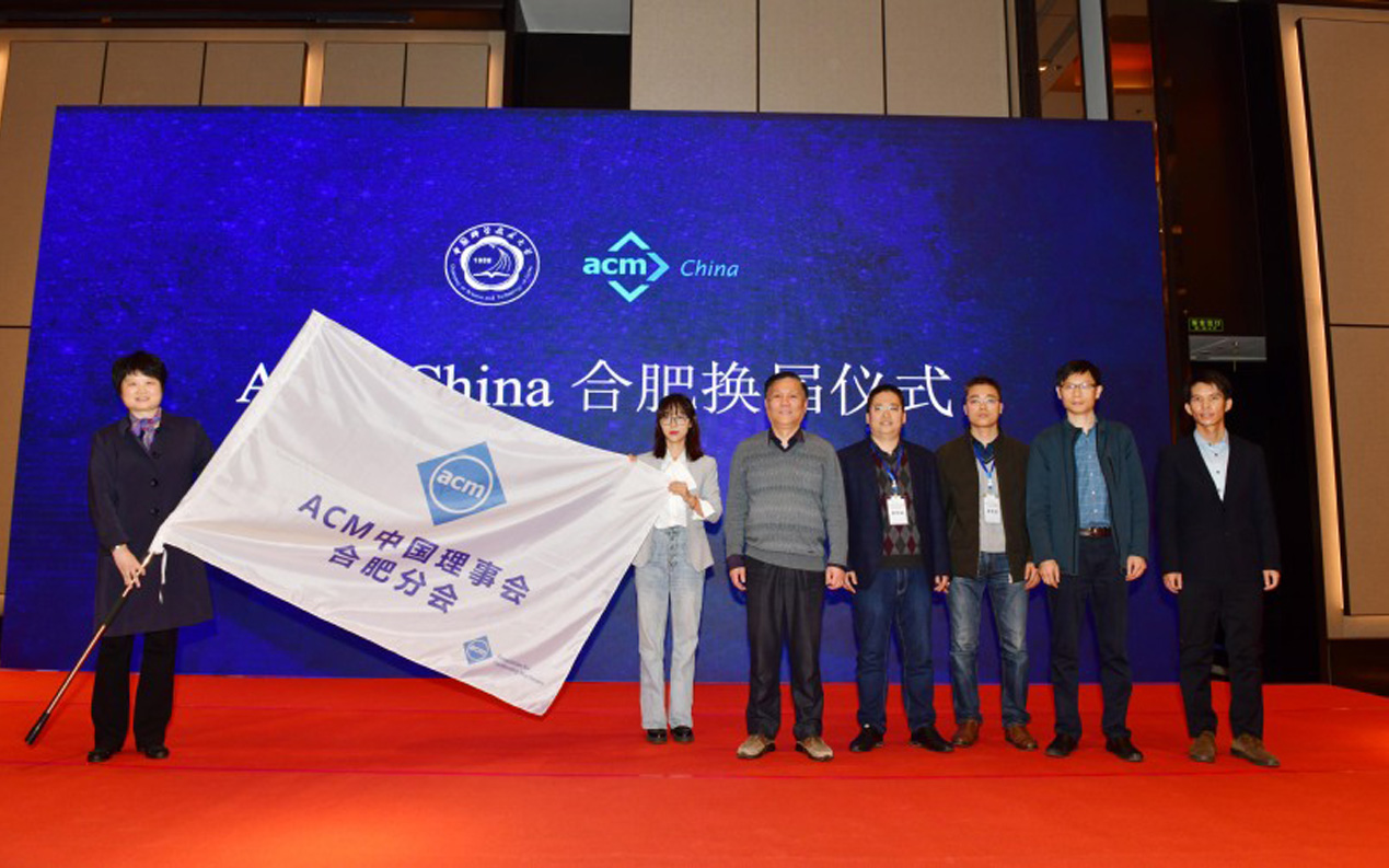 清华大学全球创新公司经理刘云浩教授主持了“ACM China合肥换届暨ACM SIGBED China成立”环节。在新一届主席团成员进行会旗交接仪式上,梅宏院士、嵇智源处长向分会联合主席中国科技大学张兰教授、联合主席安徽大学仲红教授、副主席安徽大学崔杰教授、副主席太阳成集团tyc539吴宣够教授、秘书长中国科学技术大学黄章进副教授、副秘书长安徽大学张以文教授以及17位常务理事颁发聘书。