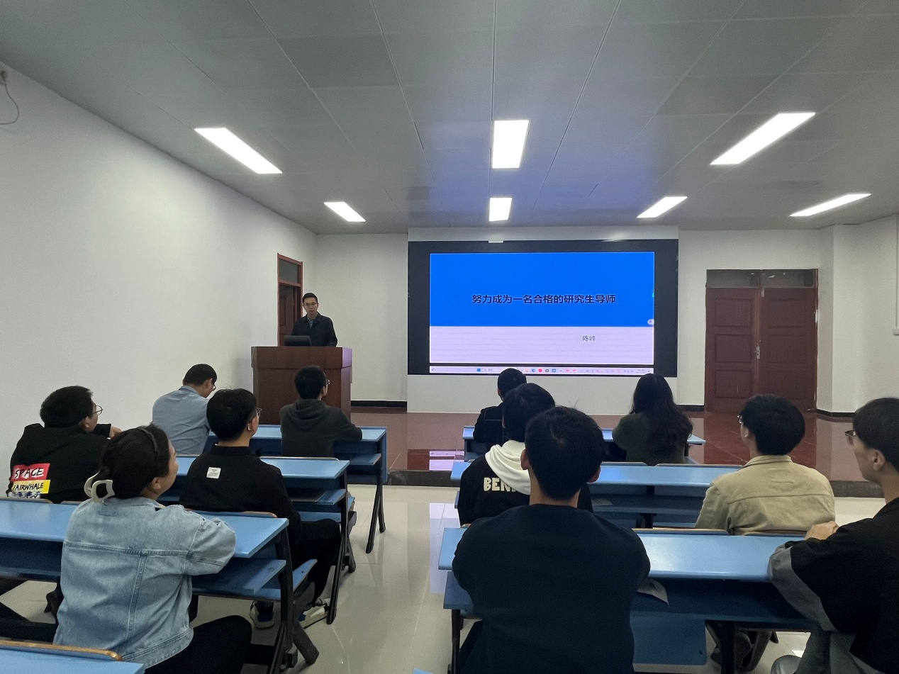 会上,阮越老师首先围绕“潜心育人”主题,进行了心得分享发言,就如何构建良好的师生关系、学术不端预防及处理、立德树人为国育才等方面内容进行了分享交流。陈峰老师围绕努力做好一名合格的研究生导师进行了经验分享交流。高云全老师就党的二十大精神学习、贯彻落实习近平总书记关于教育的重要论述、研究生教育管理政策规定、研究生教育改革创新与发展趋势等方面进行报告。
