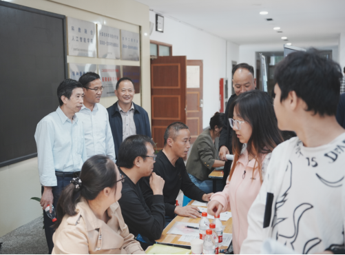 在招聘会现场,水恒福一行与用人单位和毕业生亲切交流,了解员工求职进展,鼓励他们树立正确的就业观。现场气氛热烈,人潮涌动,热情高涨,毕业生手持求职材料自信地与用人单位沟通交流,表现出良好的就业状态。