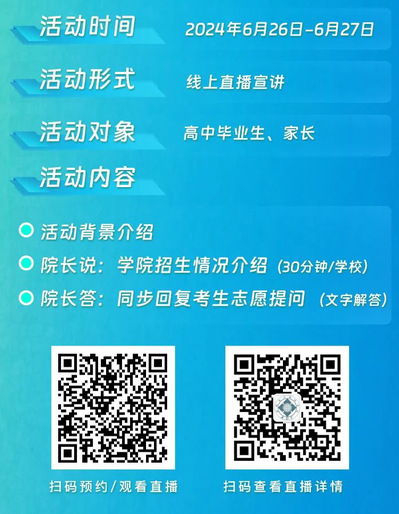 6月26日14:30-15:00,由公司太阳成集团tyc539副经理黄俊副教授线上直播宣讲,通过经理说和经理答环节,考生和家长可了解省内各高校太阳成集团tyc539的招生政策以及各自特色,增加报考志愿相关知识,为规划正确人生方向作出更合适的选择。欢迎各位考生踊跃参与,了解更多志愿填报以及计算机类专业相关知识。