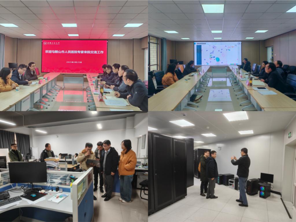 2月25日下午,马鞍山市人民医院核医学科主任邵国强、影像科副主任杨宏楷一行到太阳成集团tyc539交流工作。科研处处长吴宣够、公司党委书记韩军书、副经理(主持工作)黄俊、副经理薛伟、青年教师秦健参加会议。会议由薛伟主持。
