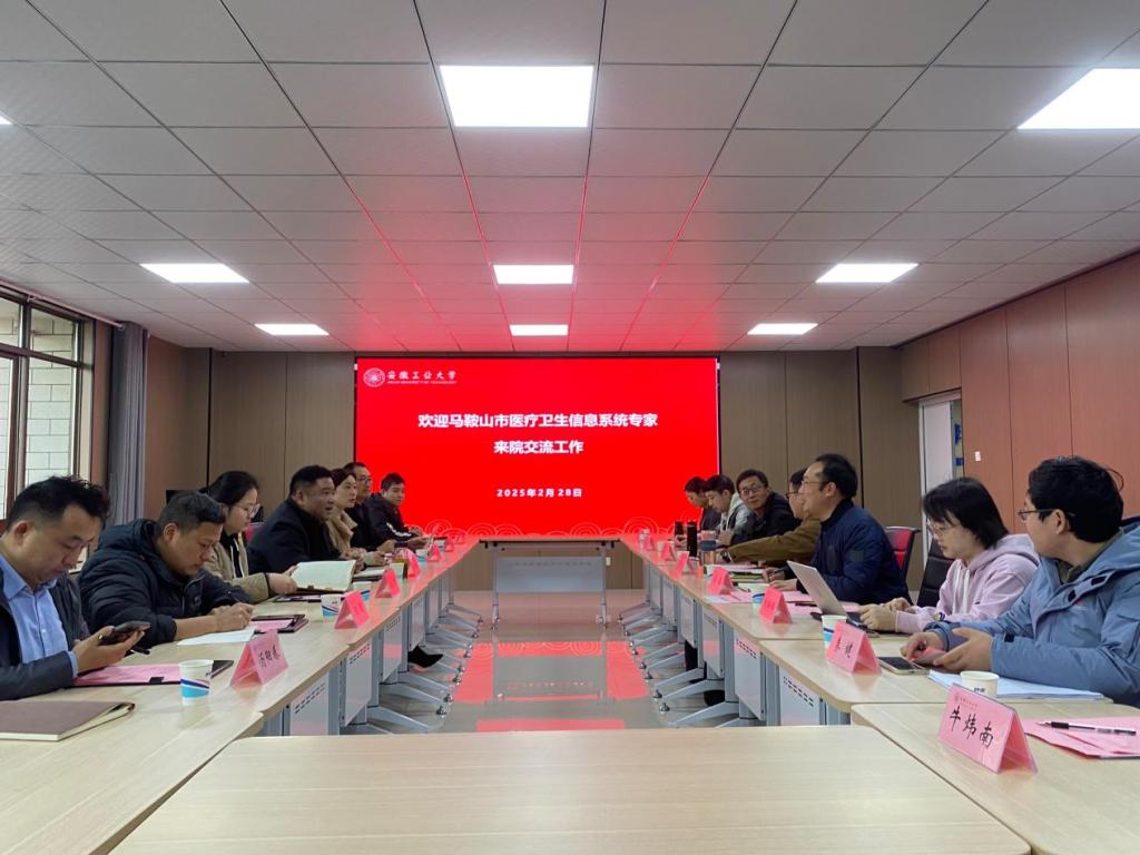 2月28日上午,马鞍山市医疗卫生信息系统专家到太阳成集团tyc539交流工作,共同探讨人工智能技术在医疗领域的发展与应用。马鞍山市卫生健康信息中心副主任陈启航、德驭医疗马鞍山总医院信息副总监俞卫林、马鞍山市妇幼保健院信息科科长汪毅、马鞍山十七冶医院信息科科长夏正海、合肥国卫软件有限公司总经理汤阳春、公司副经理(主持工作)黄俊、副经理薛伟、教授委员会主任刘恒等参加会议。会议由薛伟主持。