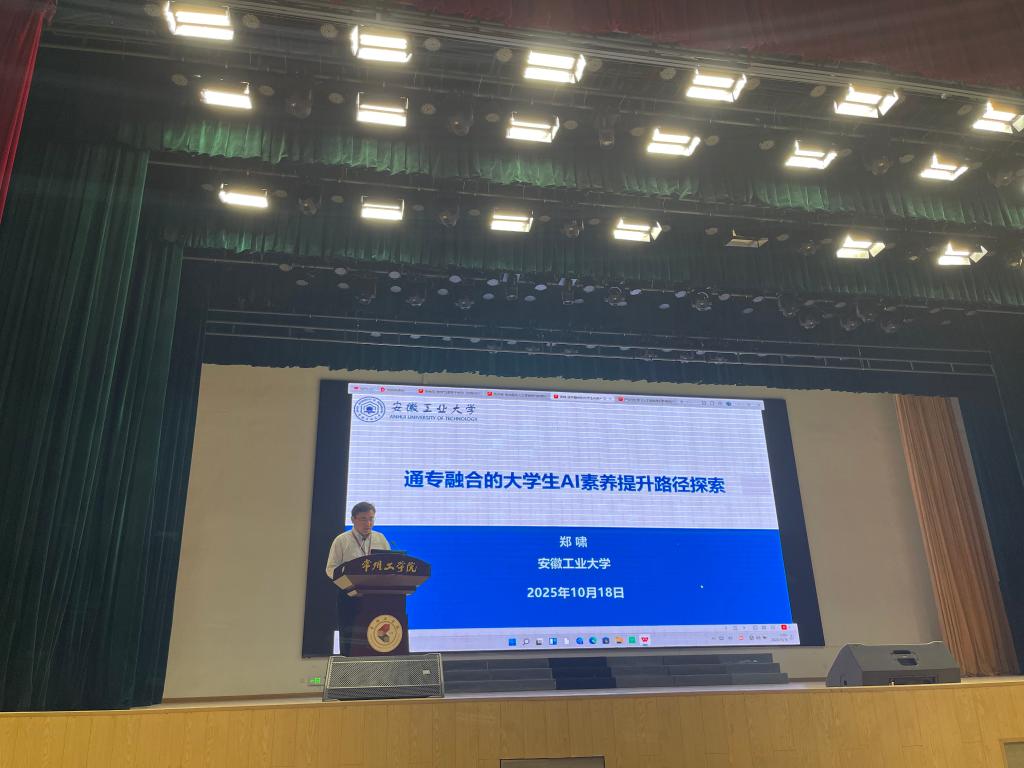 10月18日,第二届应用型高校人工智能通识公司产品改革与创新研讨会在常州工公司举办,副董事长郑啸教授率太阳成集团tyc539、管工公司、机械公司等教师参会,郑啸教授并作了《通专融合的老员工AI素养提升路径探索》主旨报告。郑啸从公司人工智能通识课改革入手,以“AI通识课+微专业”赋能新质人才培养为主题,介绍了公司人工智能通识课改革的建设举措及成效。
