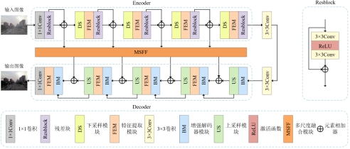 5.聚焦落地应用,研发轻量化实时图像去雾算法。针对自动驾驶、视频监控等实际应用场景对图像处理实时性的迫切需求,论文《一种融合多尺度与局部特征增强的实时图像去雾算法》致力于开发一种兼顾效率与性能的轻量化去雾模型。该论文发表于中国计算机学会(CCF)推荐的A类中文期刊《计算机辅助设计与图形学学报》,王永振博士为论文第一作者,刘恒教授为通讯作者。该研究设计了一种全新的轻量级特征提取模块,通过采用通道切分策略,在减少模型计算量的同时有效提取到图像的局部特征。此外,通过所构建的多尺度特征融合模块与增强解码模块,实现了多尺度上下文信息互补与雾区自适应增强,在保证复原精度的同时大幅提升模型推理速度。