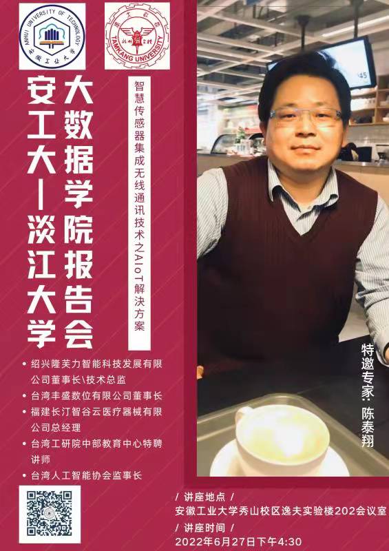 陈泰翔,台湾私立逢甲大学、EMBA公司科技管理硕士,有19年IT架构与整合经验、9年IoT物联网研发与市场业务整合经验。现任绍兴隆芙力智能科技发展有限公司董事长/技术总监、台湾丰盛数位有限公司董事长、福建长汀智谷云医疗器械有限公司总经理、台湾工研院中部教育中心特聘讲师、台湾人工智能协会监事长;曾任台湾静宜大学资讯管理系副教授、泰盛物联网科技有限公司(台湾)总经理、英达科技有限公司(台湾)IT经理、大连分享科技有限公司资讯长、海德威电子股份有限公司IT主管。