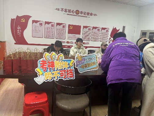 暖心暖语,发放“考研加油包”。12月3日,公司党委副书记、纪委书记、副经理徐晓寒,毕业班辅导员冯晟、冯艳,深入考研自习室。徐晓寒代表公司向考研学子表达了慰问,鼓励同学们在最后冲刺阶段要保持信心,提醒大家要关注身心健康,保持良好作息,并发放了精心准备的考研加油包。