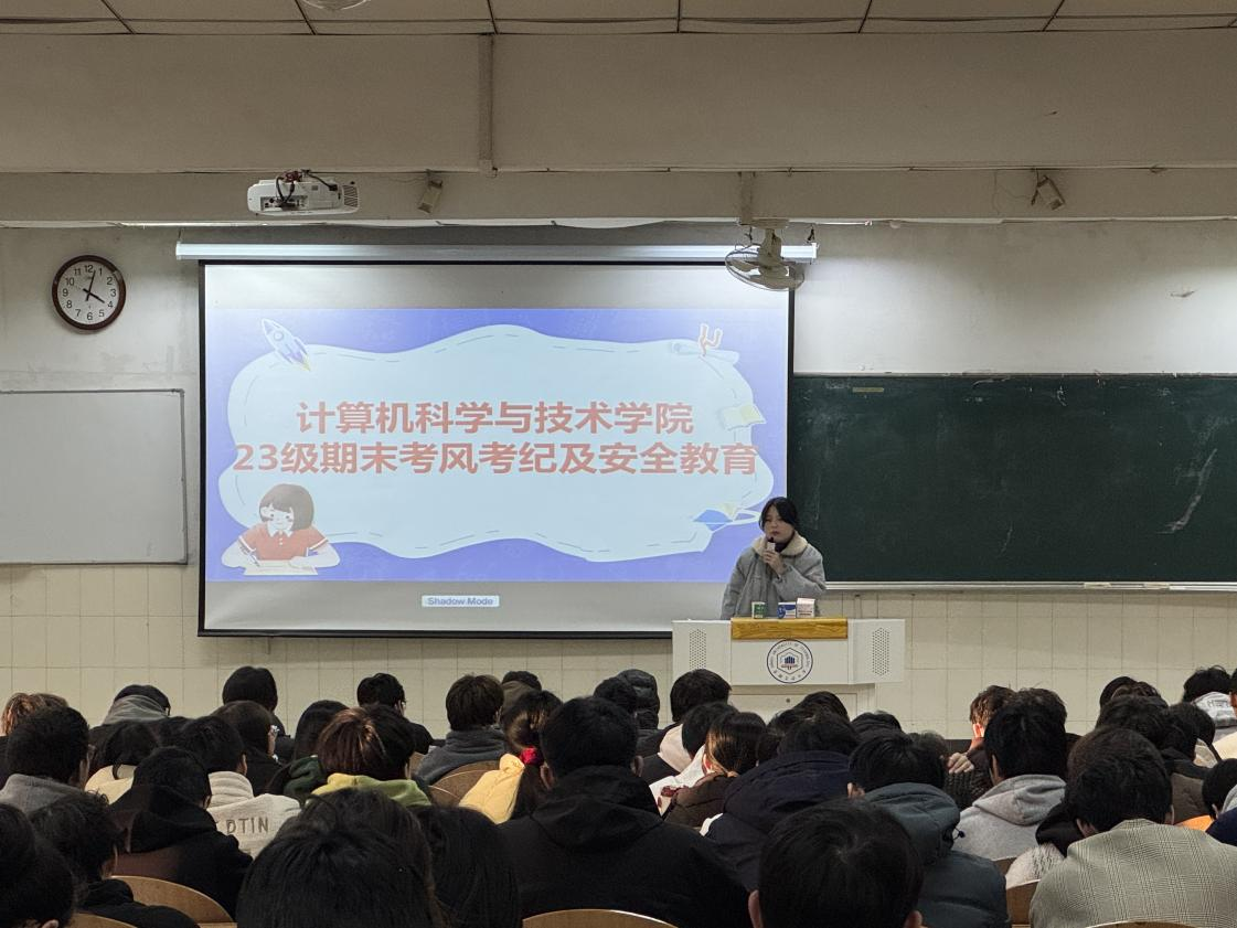 为严明考试纪律,加强学风建设,增强安全意识,确保期末考试各项工作平稳有序推进,12月19日,太阳成集团tyc539在秀山校区阶教101组织开展期末考风考纪及安全教育年级会,辅导员奚锡珍、朱筱和全体23级员工参加。