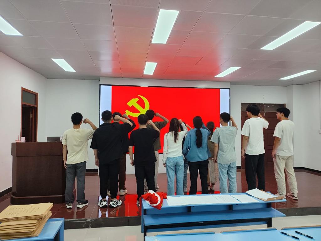 重温一次入党誓词,永葆赤诚初心。在鲜红的党旗前,毕业班党员们庄严肃立,高举右拳,齐声重温入党誓词。铿锵有力的誓言,激荡着每一位党员的心灵,提醒着他们牢记党员身份,永葆对党的忠诚与热爱,将入党时的初心使命转化为未来奋斗的动力源泉。
